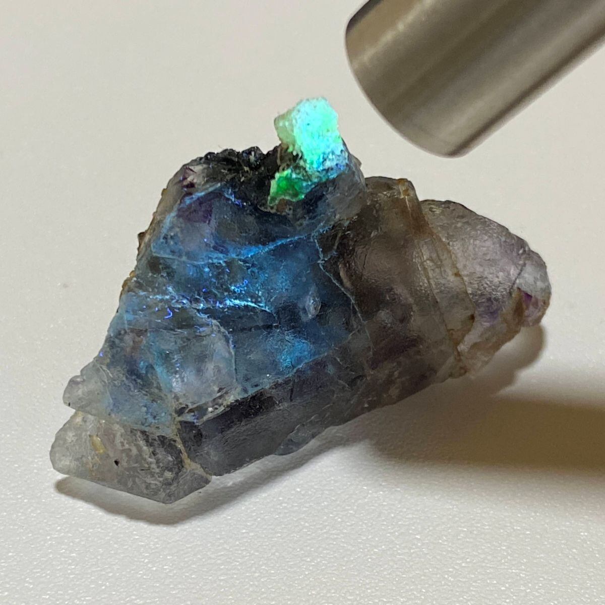 頂上に付いているものはブラックライトで緑蛍光します。